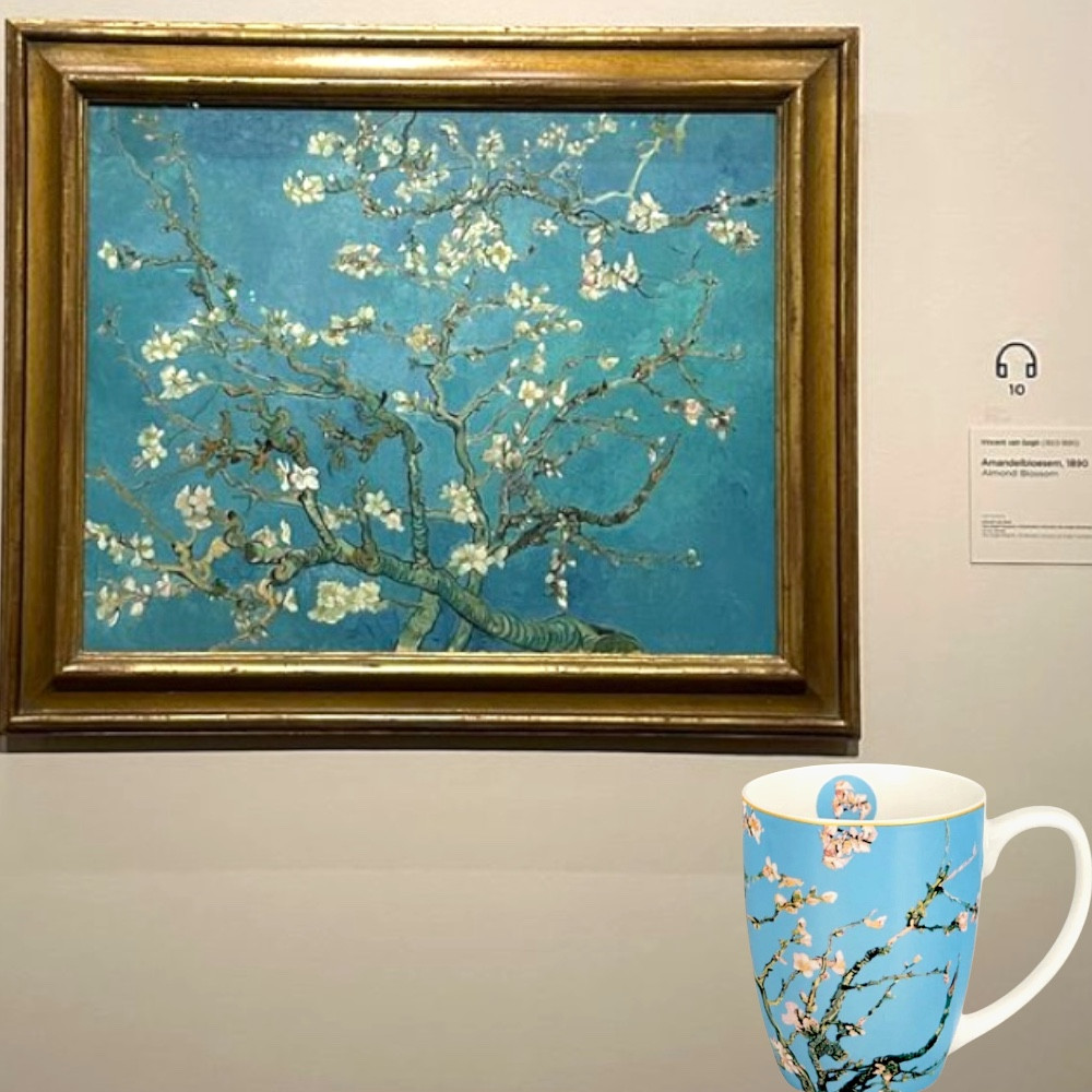 Van Gogh Mandulavirágzás porcelánbögre ajándék díszdobozban