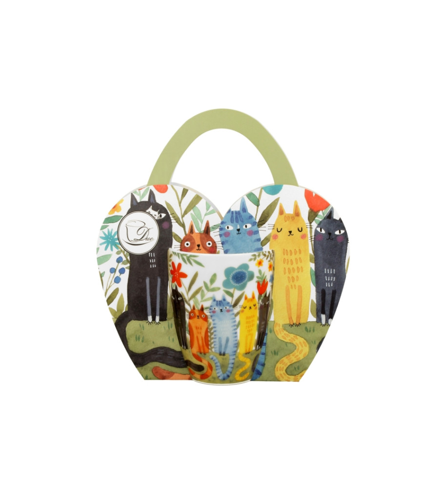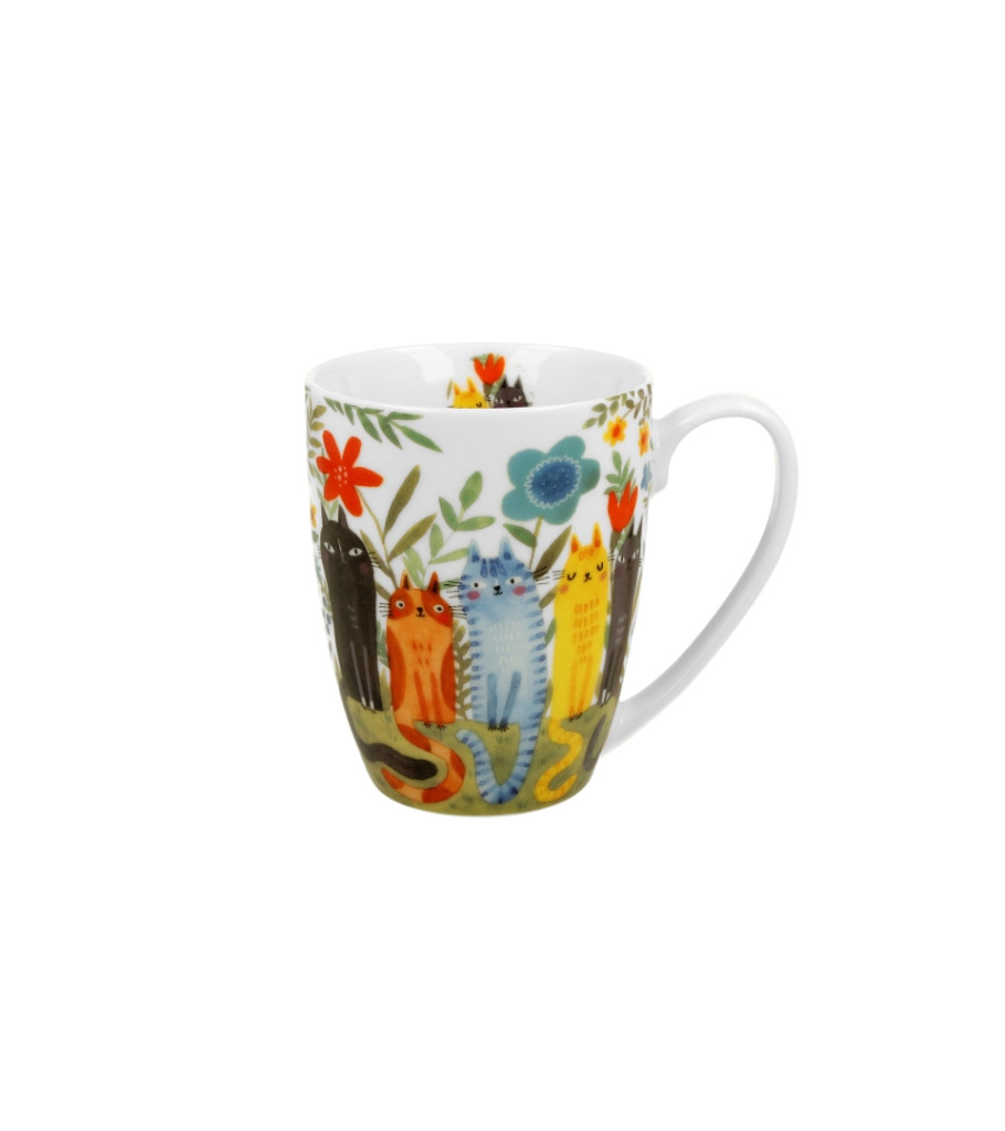 Cicás porcelánbögre- cicák a virágoskertben bögre diszcsomagolásban 360ml