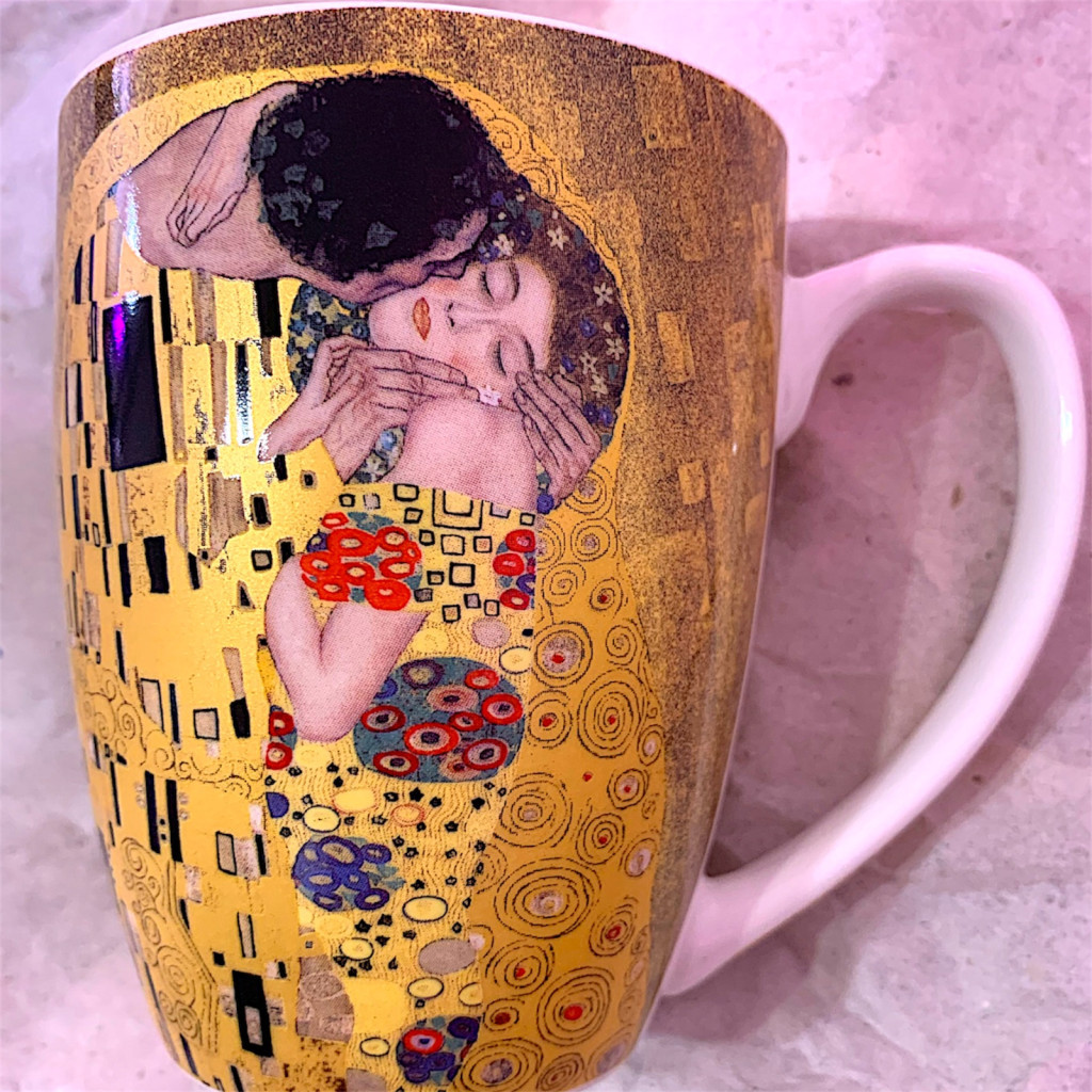 Klimt A csók porcelán bögre 360ml ajándék díszdobozban