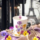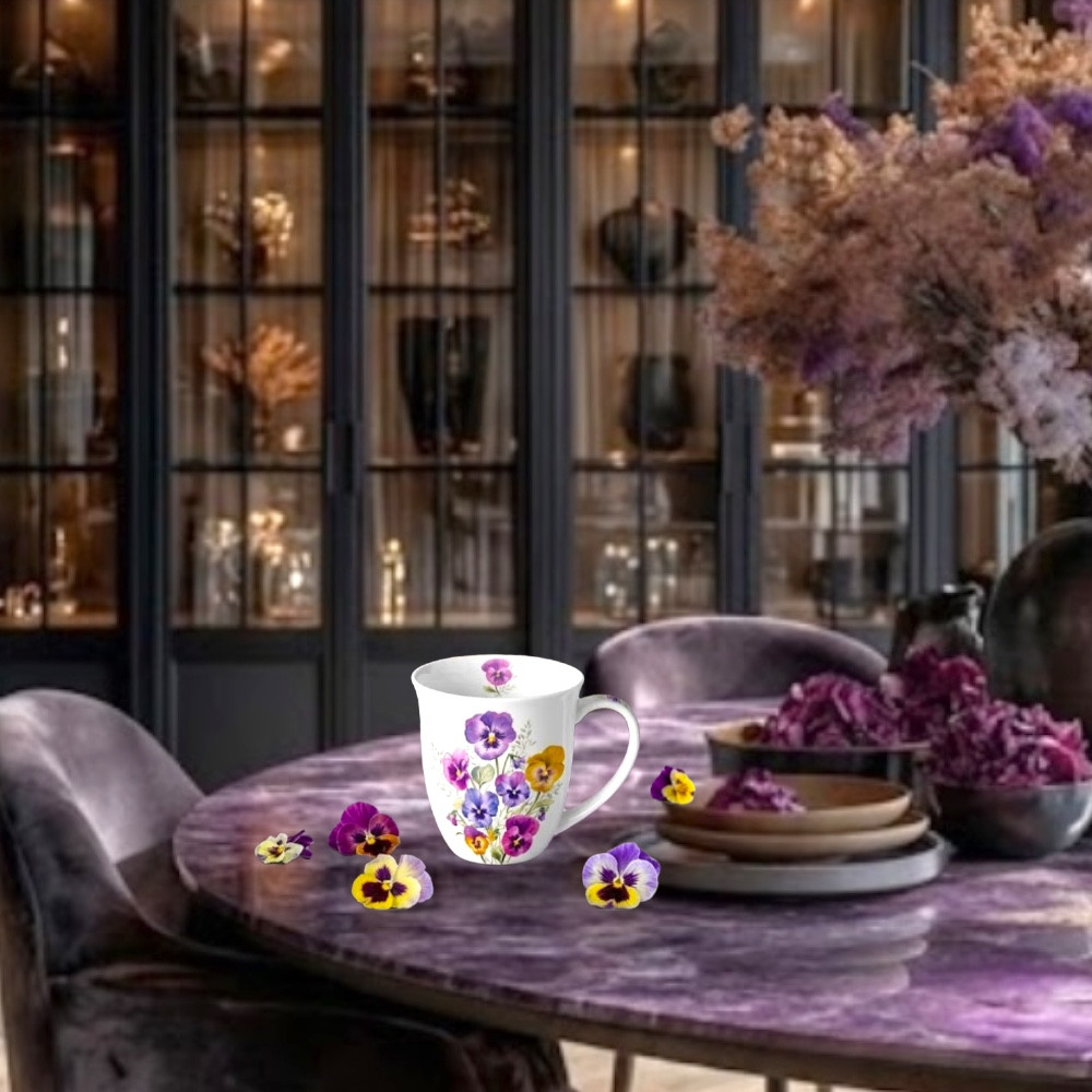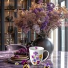 Romantikus Árvácska virágos porcelánbögre  400ml